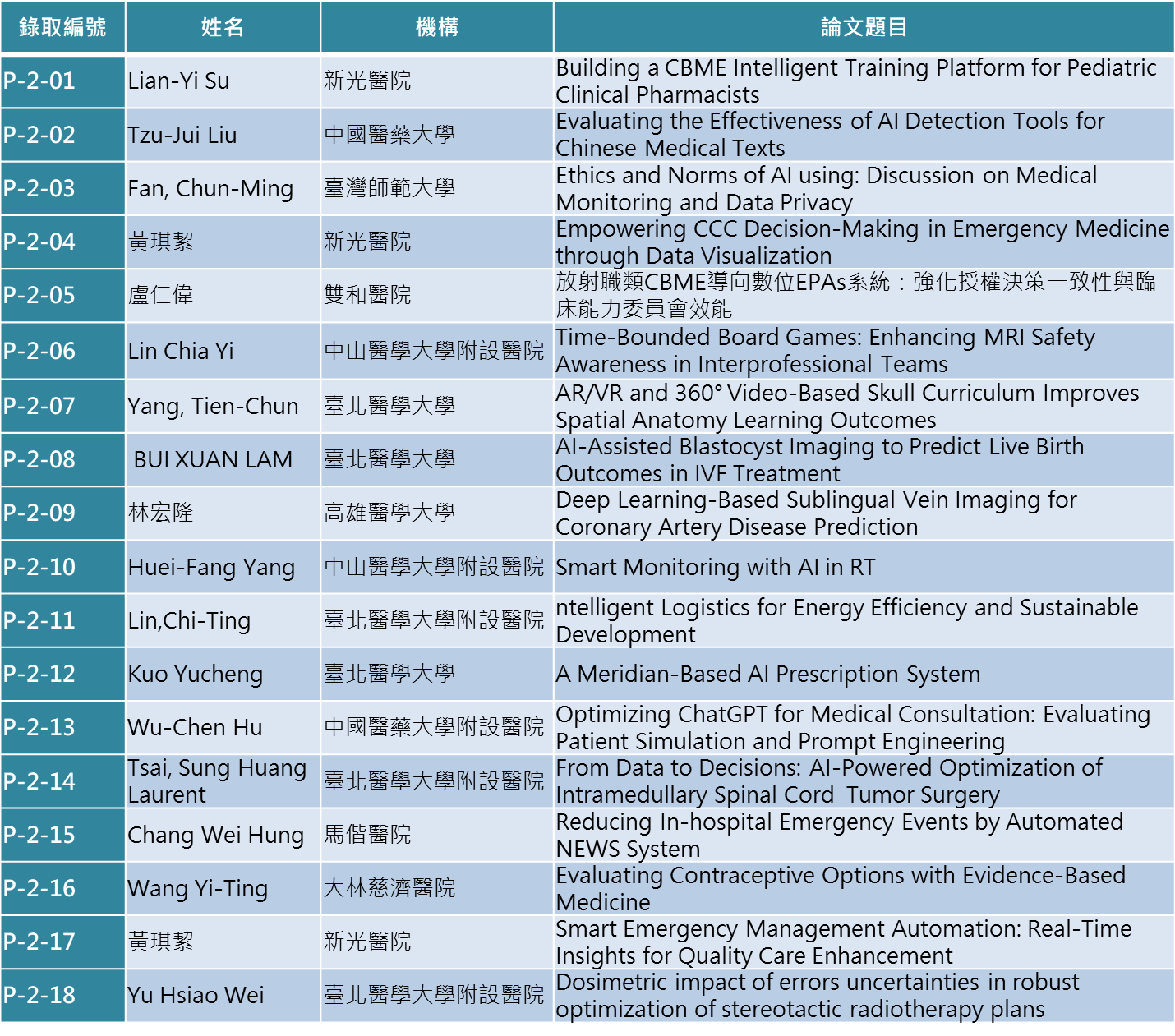 第二組【Future Hospital-AI、ESG、減碳、智慧照護、醫療品質、機器人等等 / Future Medical Education-CBME、科技導入教學、生成式AI教學、CDP等】