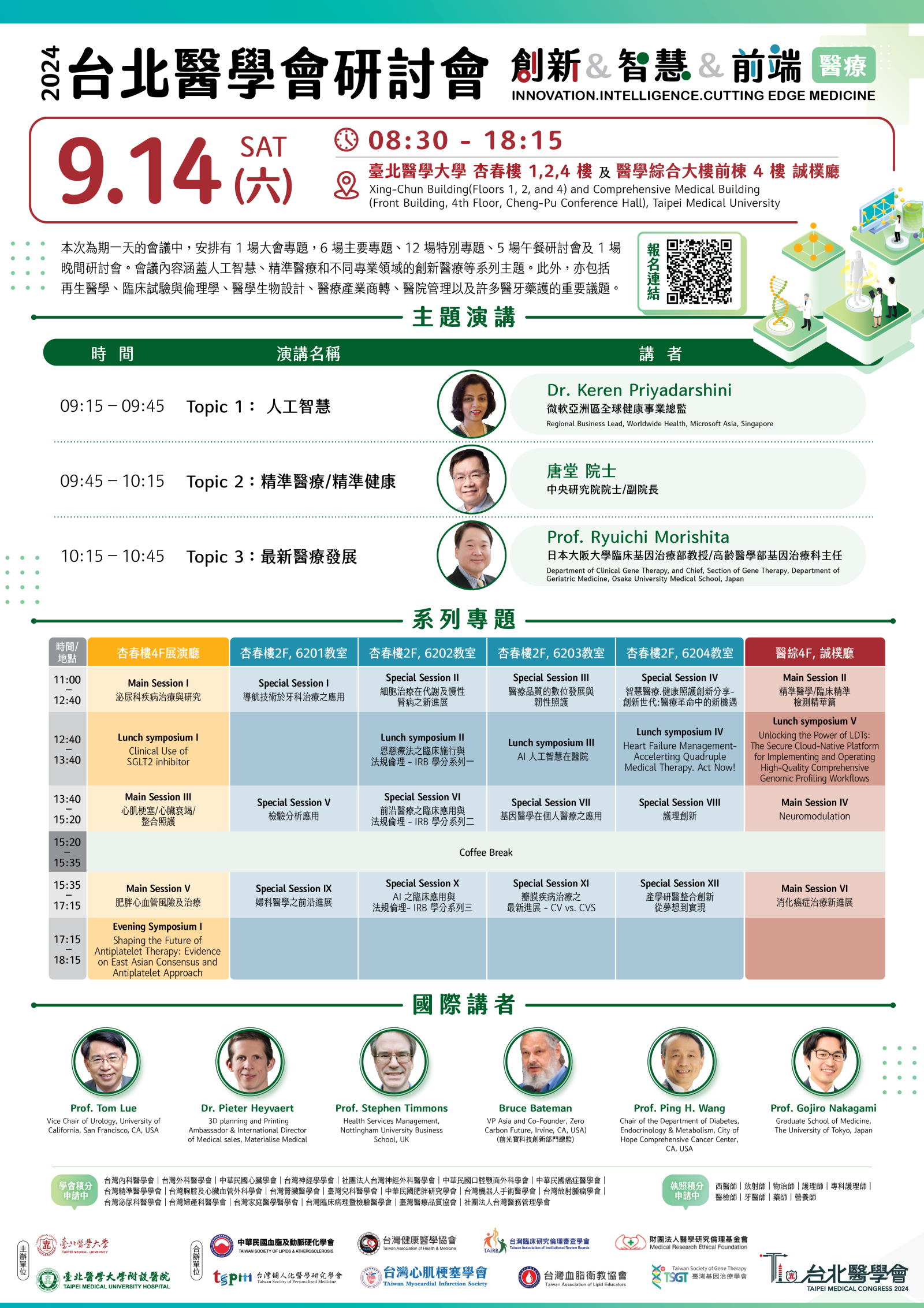 113年09月14日臺北醫學大學及臺北醫學大學附設醫院共同主辦「2024 台北醫學會研討會」