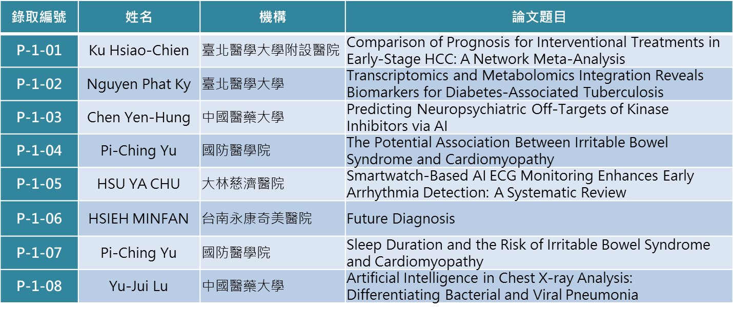 2025台北醫學會研討會-海報論文入圍公告